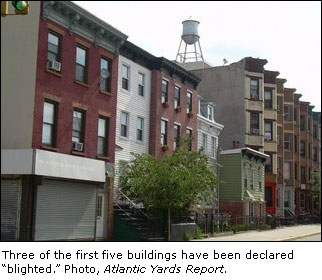 It also reminded us of the fate of the corner rowhouses on Dean St. where only three of the five have been declared "blighted" (because the properties are underdeveloped) by the Empire State Development Corporation the other two houses are just in the way.