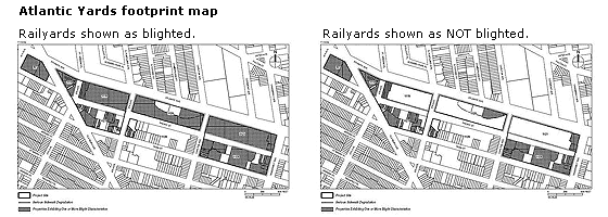 In another post, AYR explained that much of the non-railyard property in the footprint is deemed "blighted" because it is underdeveloped, meaning either at least 50% of the lot is vacant or the property is developed to less than 60% of the allowable Floor Area Ratio (in other words it isn't big enough). Under the 60% rule, Bruce Ratner's own Atlantic Center Mall is, like, mad blighted.