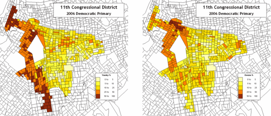 CUNY's John Mollenkopf, the political scientist, Park Slope resident, and computer whiz, has put together a hugely useful set of electoral-district by electoral-district maps of the outcome of the race to replace Major Owens in Brooklyn's 11th congressional district.
