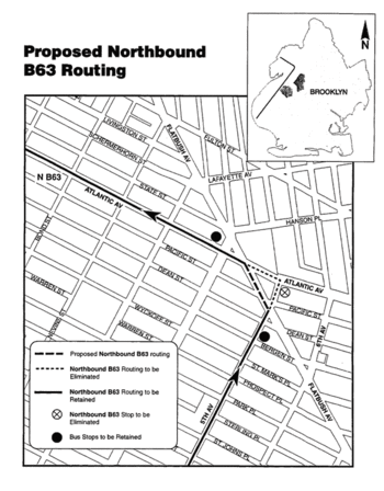 This is to inform you of NYC Transit's service revision to the northbound B63 bus route in Downtown Brooklyn.... This reroute will take effect upon the closure and de-mapping of 5th Avenue between Flatbush and Atlantic Avenue in the near future.