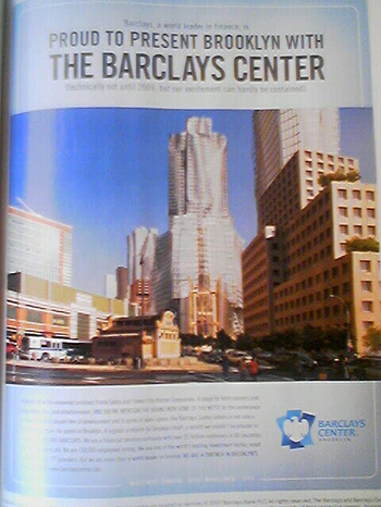 Apologies for my crappy camera phone. The text at the bottom drones on about the exciting new development and amazing new open space and incredible new concert hall and peformance center and Nets arena.