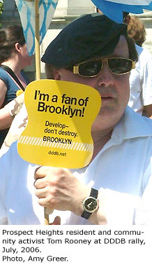 Tom joined the fight against Bruce Ratner's Atlantic Yards in the early days, when the project was first announced. He was a ubiquitous presence at public forums and events and kept his friends and neighbors informed about the latest news and developments concerning the project, which threatens to drastically alter the neighborhood in which he spent his entire life.