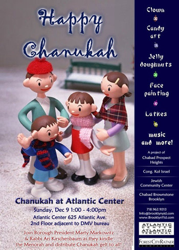 Marty Markowitz gets another opportunity to mark the holiday season with a ceremony in a Forest City Ratner development. Last time, the occasion was the Christmas tree lighting at the soulless Metro Tech. This time, it's a Chanukah festival at the soulless Atlantic Center.