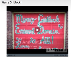 [Aaron Naparstek] doesn't even mention the elephant at the edge of the intersection, the planned Atlantic Yards project, which would certainly exacerbate gridlock. The only hint: one frame capture some anti-Atlantic Yards art painted by Patti and Schellie Hagan of the Prospect Heights Action Council.