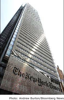 Everybody knows The New York Times' newly-erected skyscraper home has been plagued by falling glass, ice and vermin. In December, the Department of Buildings dropped by the place to investigate after what we thought was the third time debris was reported to have fallen from the building. Not so! A look at records kept by the Department of Buildings shows that people have been complaining about flotsam and jetsam raining from the Renzo Piano building since construction began in 2005—18 of the 33 complaints on record about the building are related to material flying off of it. Screwdrivers, bolts, steel, glass, i-beams, what have you. There was the time that wet concrete fell on to some NYPD cars below. Oopsies! And the time an entire window fell from the sky onto a car below. Then there's the succinct complaint from July 31, 2007: "Something fell off the building." You don't say? Yikes.