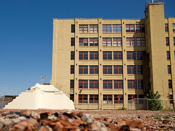 Inexplicably, the remnant of the pumpkin graffiti wall, on the lot that was formerly Vanderbilt Products, has been painted white.