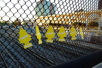 Either someone is trying to clear the air over Atlantic Yards, or these trees are replacements for the ones just chopped down by Bruce Ratner.