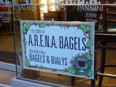 You may remember the battle that raged back in 2007 over the naming of a new bagel place on the north end of Fifth Avenue "Arena Bagels." Some area residents were so up in arms over the Atlantic Yards project that they refused to support any business alluding to it, even if there was no direct connection. After some time owner Ravi Aggarwal finally decided to relent and rename the shop A.R.E.A Bagels, which it's remained ever since.